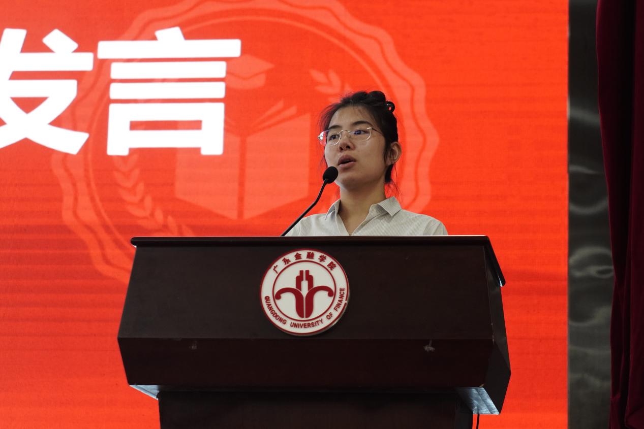 学生代表黎浩恩作诚信考试倡导。她呼吁我院学子应继续拼搏,展现新时代青年风采,在考试中恪守道德准则,做到诚信考试。